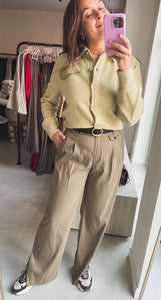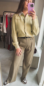 Woven Wide Leg Trousers Capers Brownish Green - YAYA