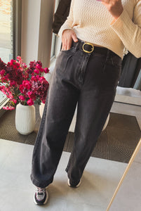 Woven Wide Leg Trousers Anthracite Mel - YAYA