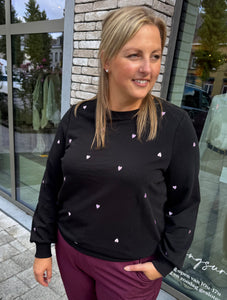 Mia Sweater Black Mauve Hearts - Only Carmakoma