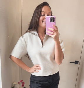 Short Sleeve Sweater With Coll Chalk White - YAYA