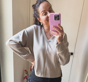 Rib Sweater With Round Neck Taupe Grey - YAYA
