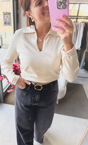 V-Neck Sweatshirt With Elastic Medium Grey Melange - YAYA