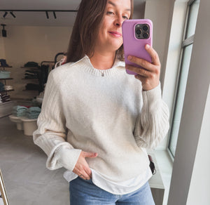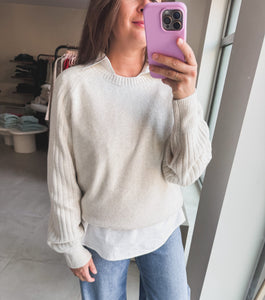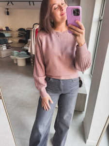 Rib Mixed Sweater Blush Pink Melange - YAYA