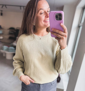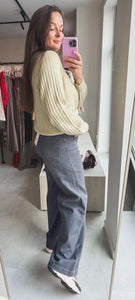 Rib Mixed Sweater Pale Olive Green Mel - YAYA