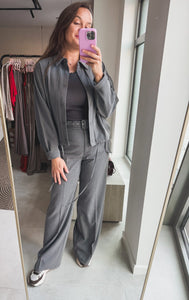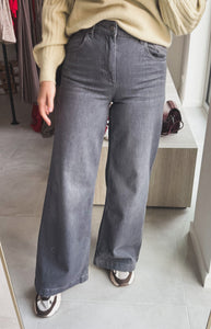 Woven Wide Leg Trousers Anthracite Mel - YAYA