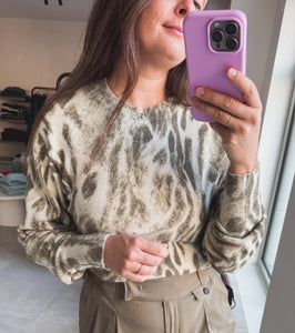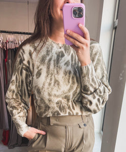 Sweater With Allover Print Pale Khaki Beige Dessin - YAYA