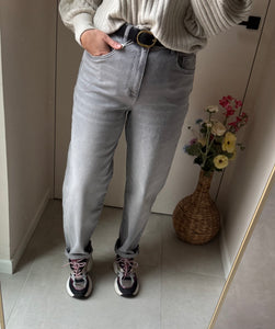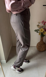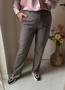 High Waist Straight Fit Dark Taupe Grey Melange - YAYA