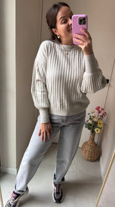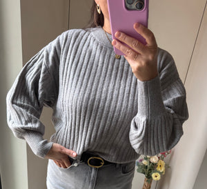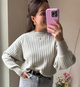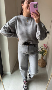 Rib Sweater With Round Neck Cloud Grey - YAYA