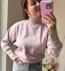 Sweatshirt With High Ribbed Collar Shadow Gray Pink - YAYA