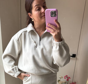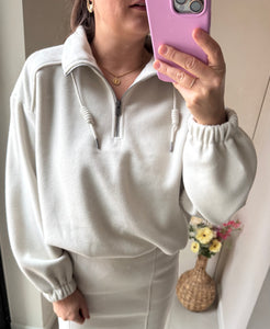 Balloon Sweatshirt With Zipper Cloud Grey Melange - YAYA