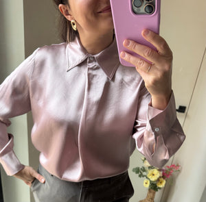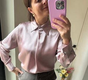Satin Blouse With Classic Collar & Hidden Closure Shadow Gray Pink - YAYA