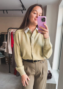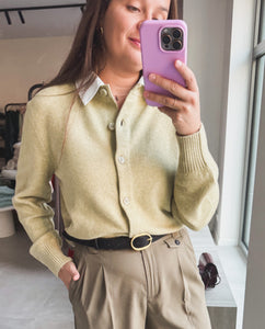 Cardigan With Detachable Woven Pale Olive Green - YAYA