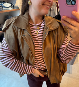 Jules Stripe Tee - Cafe/Roos